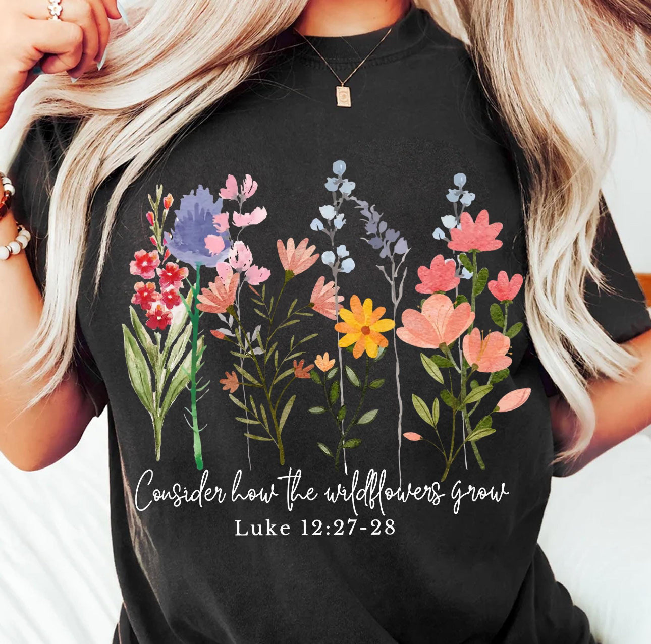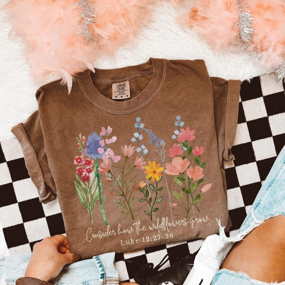 Crafted from 100% cotton. Shirt brand is Comfort Colors.
