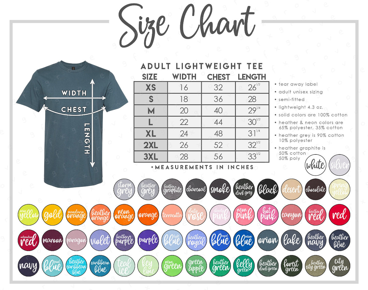 Don’t see what you’re looking for? Message us for other shirt colors and styles.